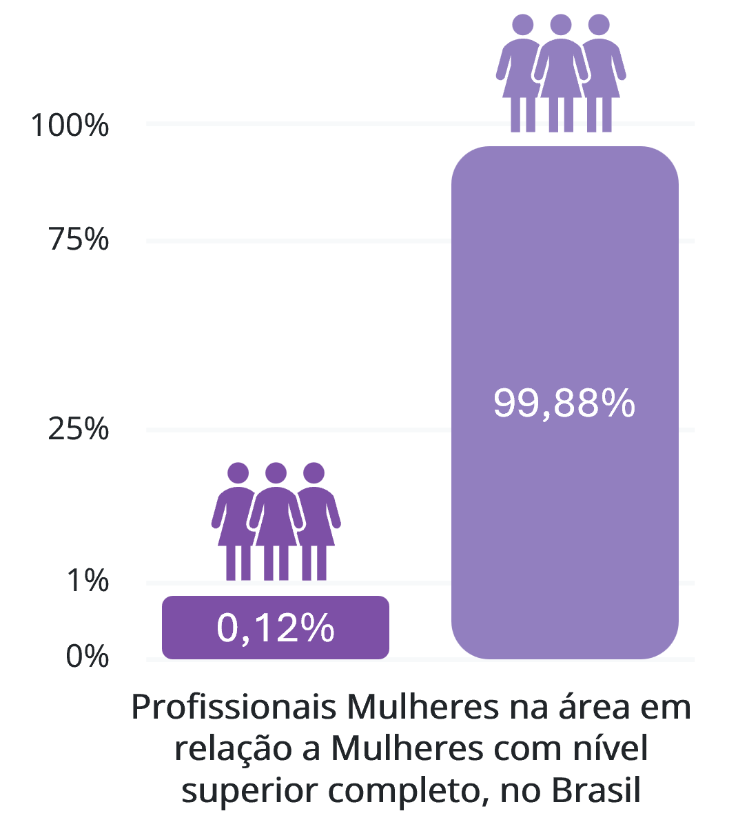 Apesar do crescimento progressivo da participação feminina, impulsionado por políticas de inclusão e equidade, as mulheres ainda representam uma parcela menor do total de profissionais da área, especialmente em cargos de liderança.